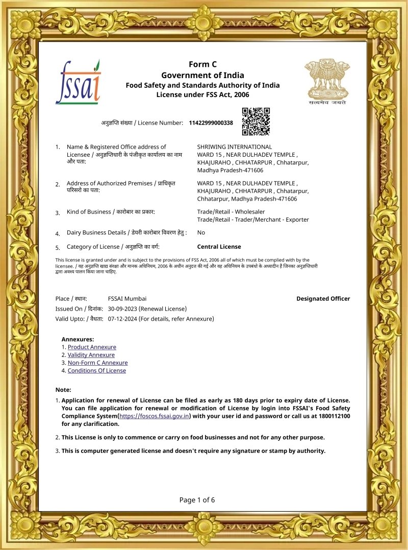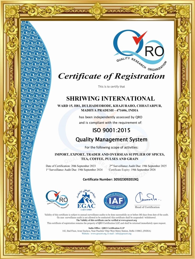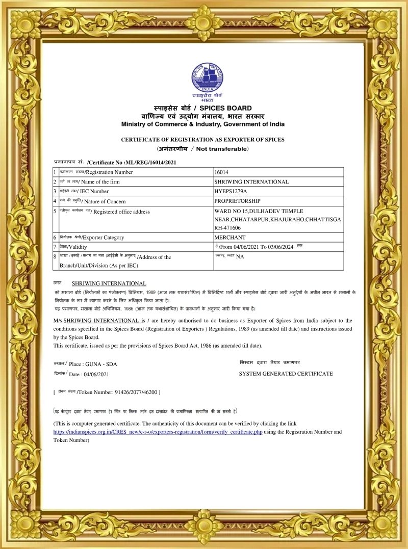 We, Shriwing International, are exporters of fruits, vegetables and spices.